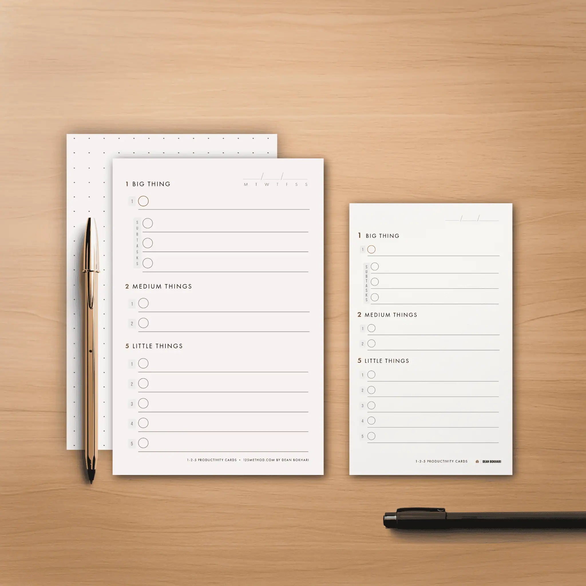 The 1-2-5 Daily Productivity Cards. Now in two sizes: Large (4" x 6") + Classic (3" x 5")