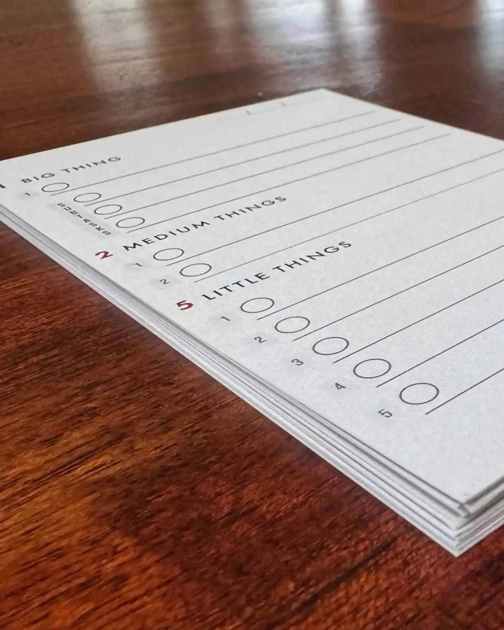 The 1-2-5 Daily Productivity Cards offer a different approach: Pick one major task, two medium tasks, and five minor tasks to complete each day. It's simple, structured, and astonishingly effective.