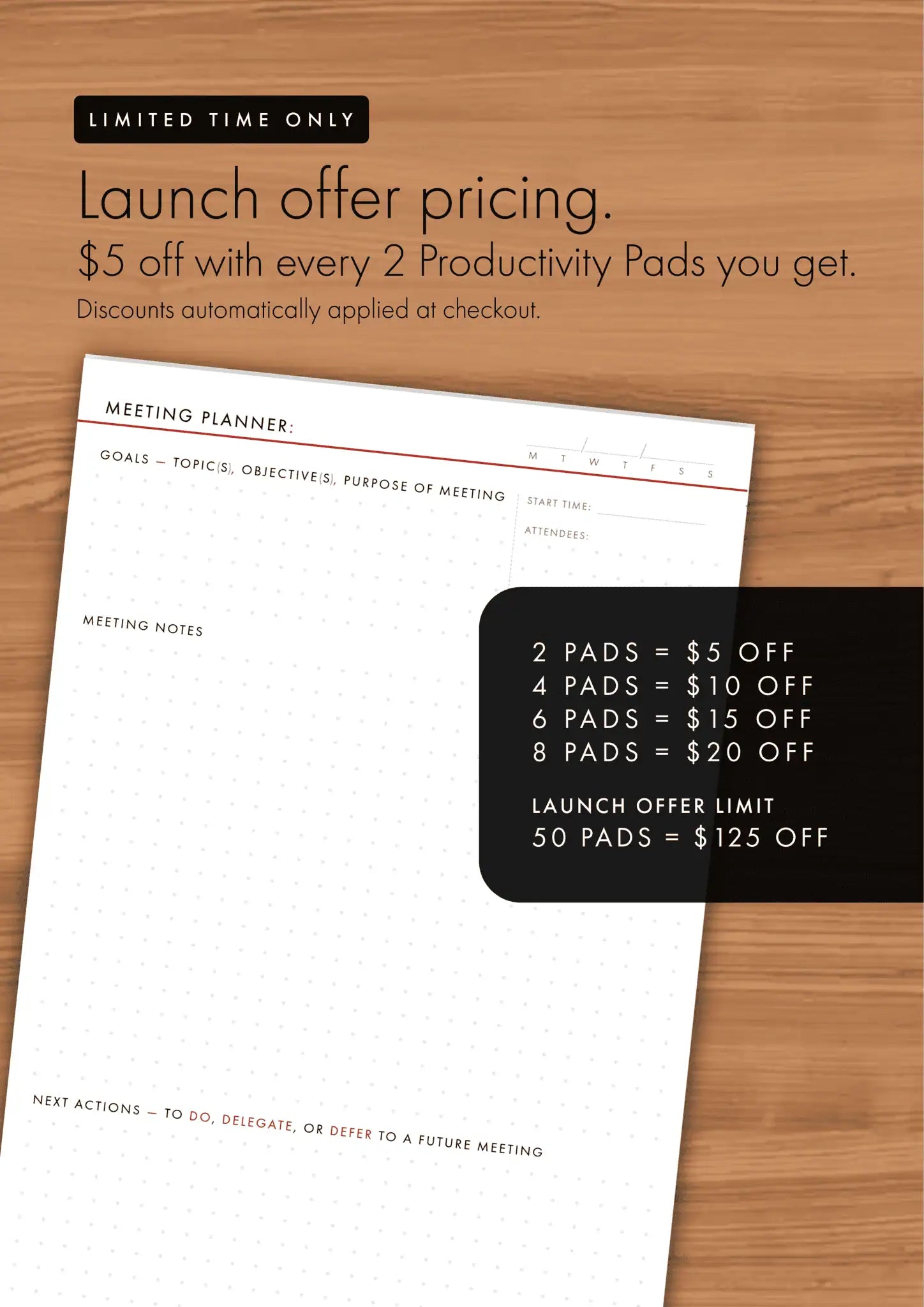 Pairs perfectly with: The 1-2-5 Productivity Pad and/or Weekly Planning Pad.
