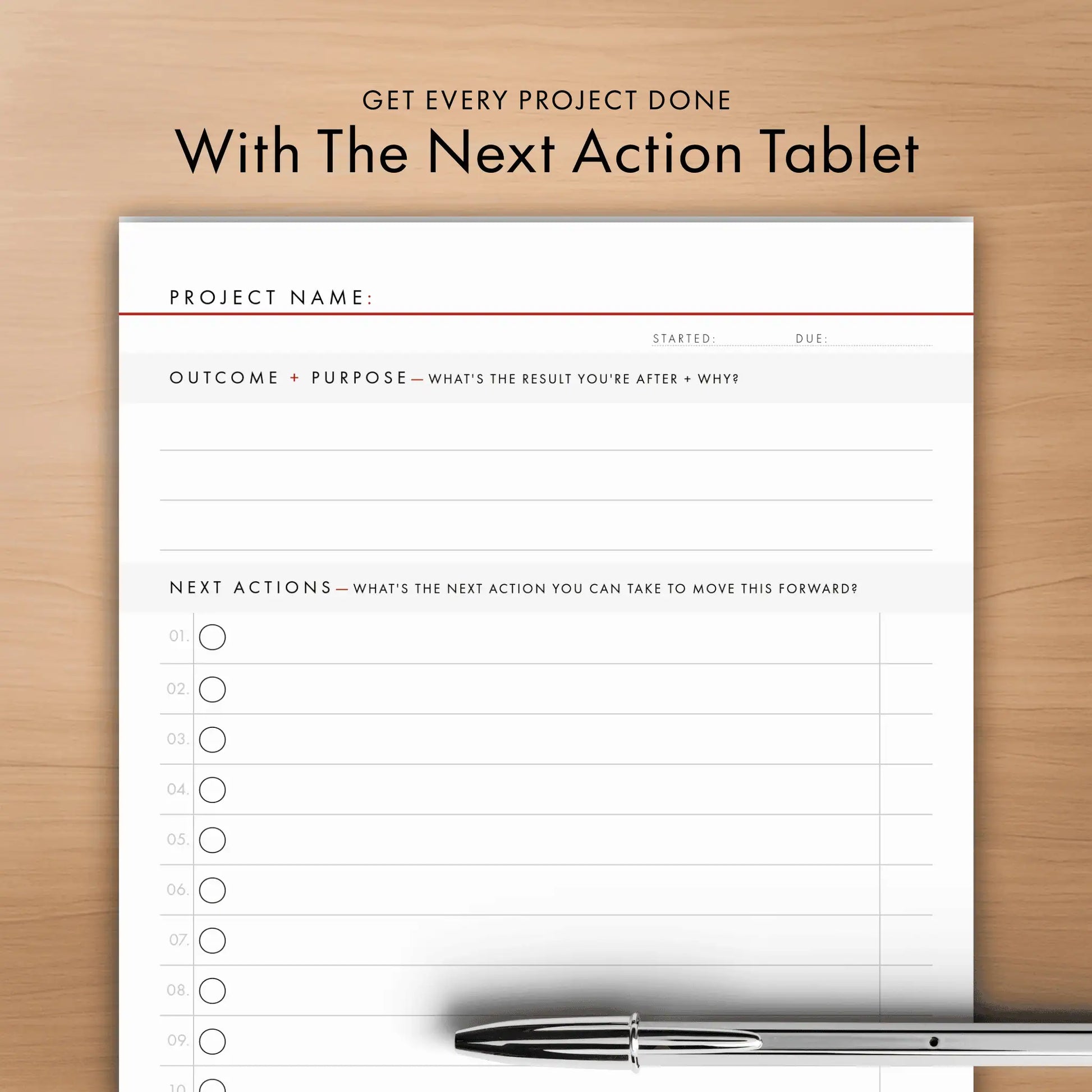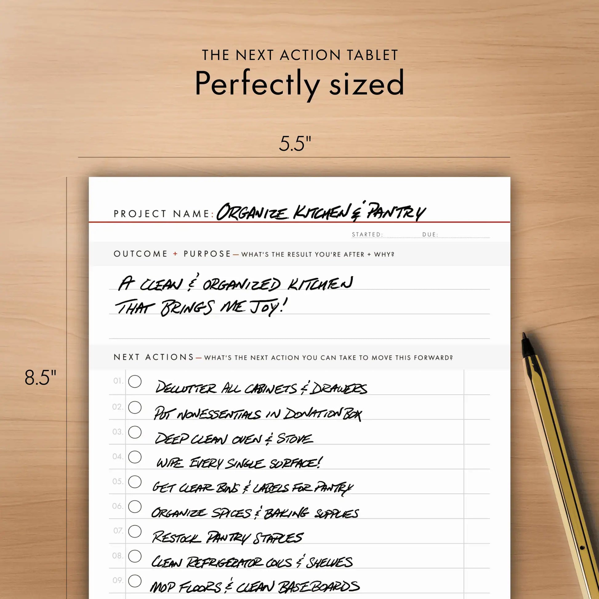 Got a list of goals or projects that never seem to cross the finish line? The Next Action Tablet is designed to help you with exactly that, so you can close the gap between "having a goal" and "getting it done." Productivity never felt so good.