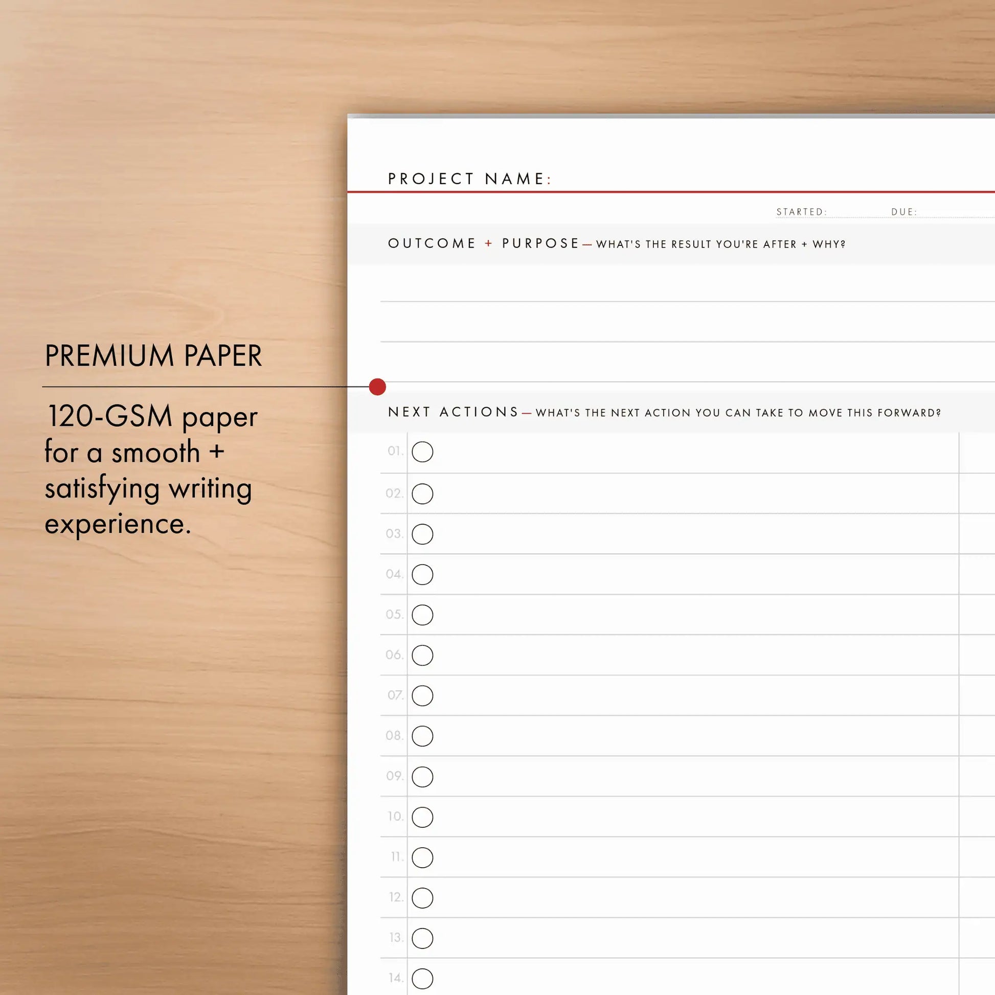 We use ultra-premium 120-GSM bright white paper — thicker + smoother than regular notepads.