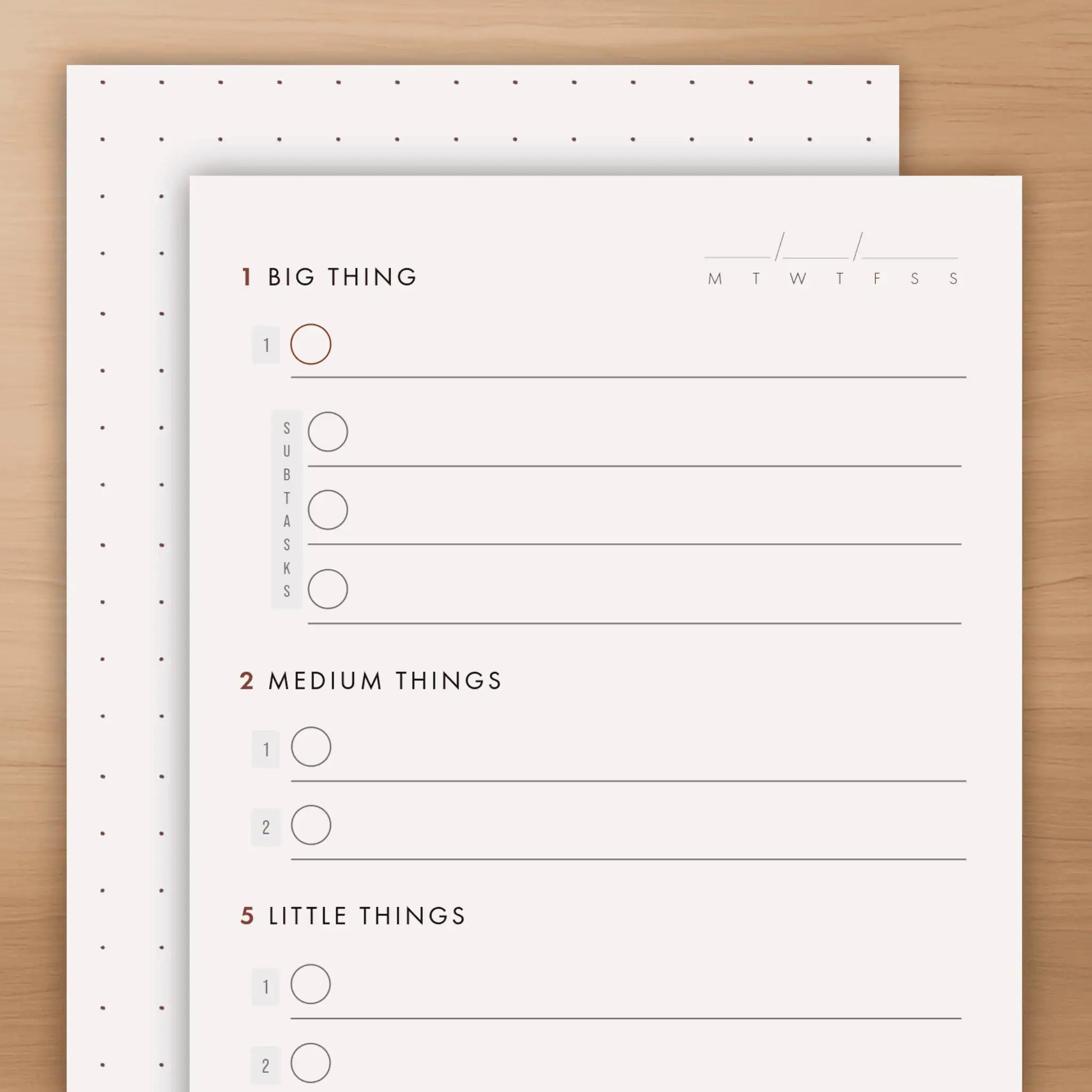 - 1 Big thing. Write down the single most important task you need to get done today.