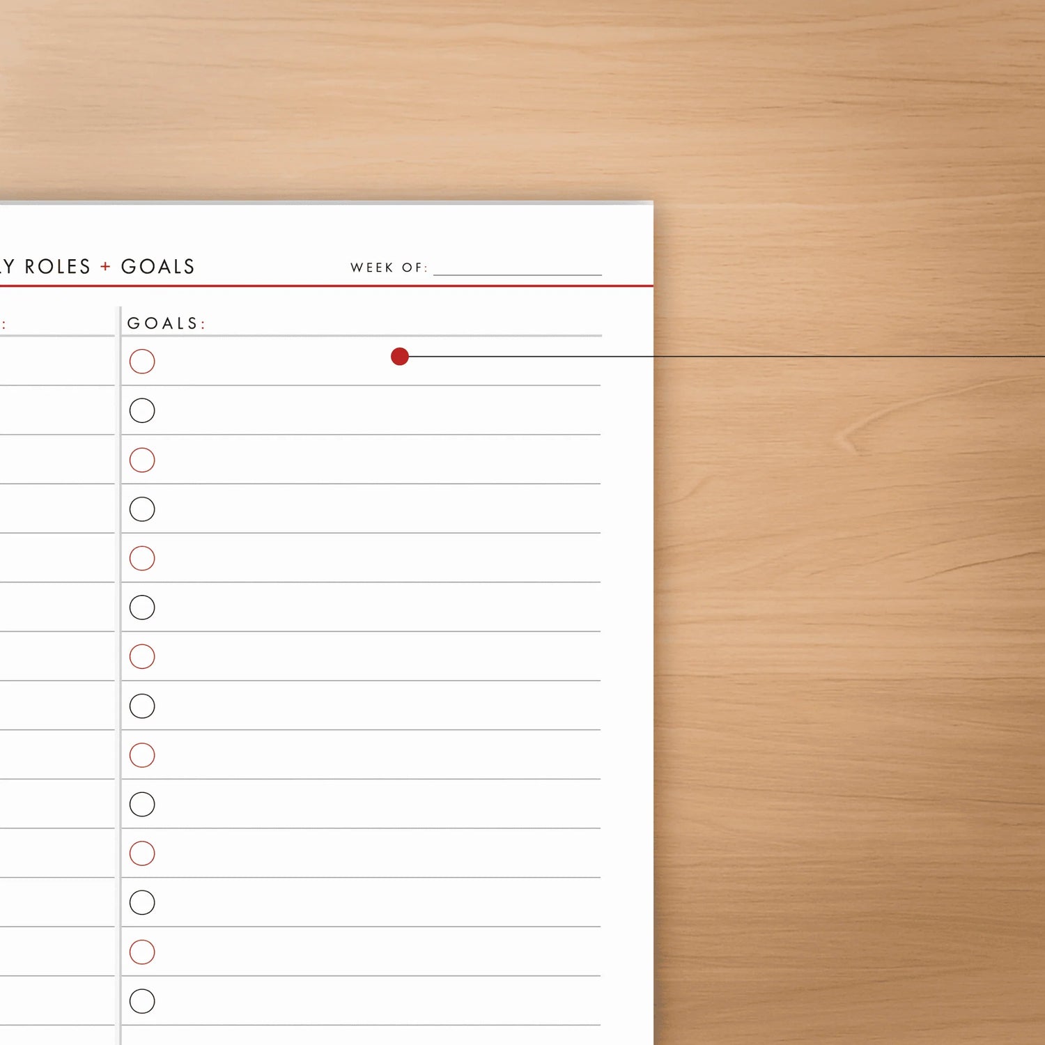 Then, under the “Goals” section, write down 1-2 goals you’ll work on or accomplish within each of your roles this week.