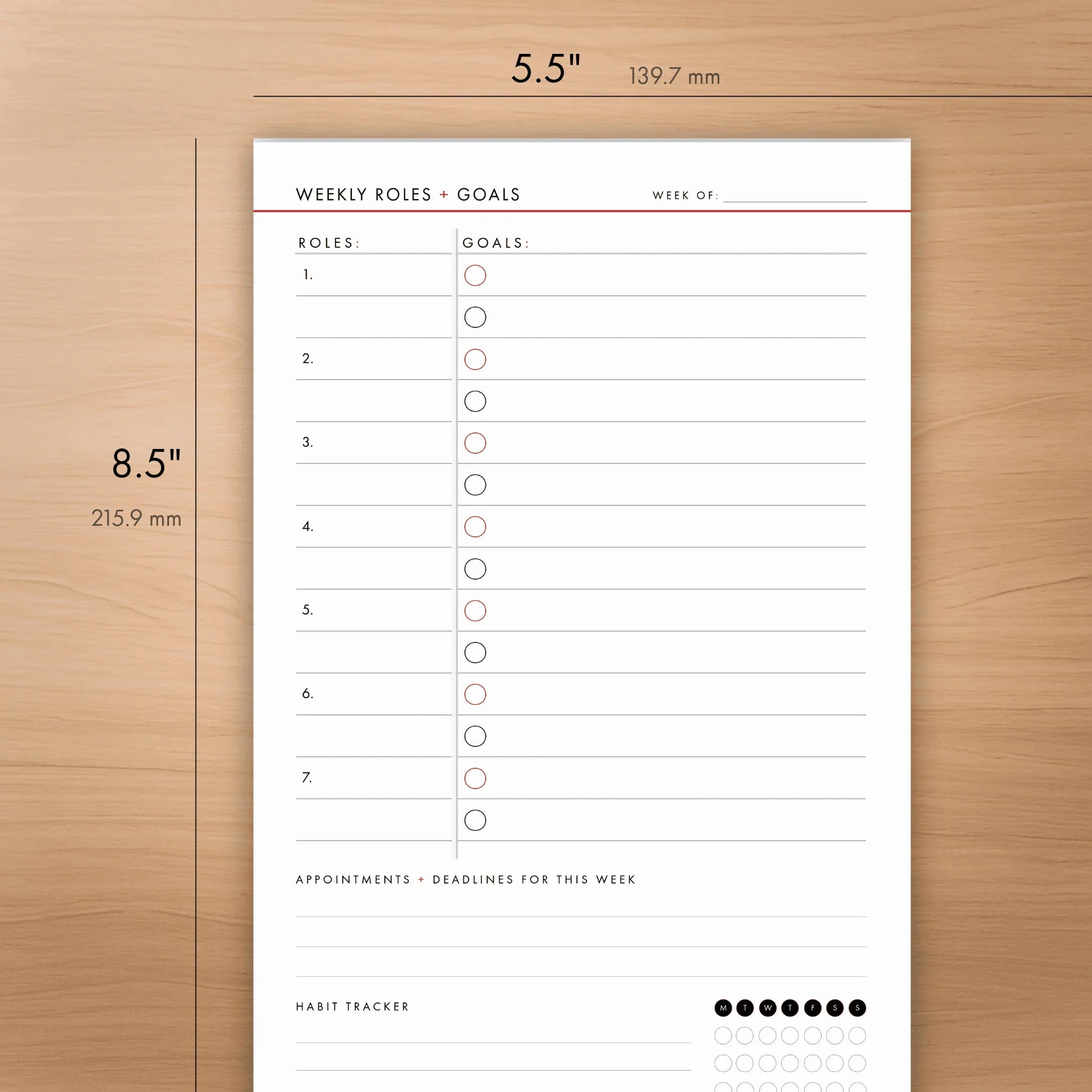 - Each page contains enough space for 7 Roles + 14 Goals. You don't have to fill them all out unless you want to.